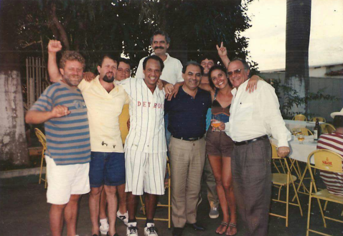 Teve uma época em que o craque Reinaldo, ex-jogador do Atlético, esteve por estas plagas em negociação para ser o técnico do Mamoré. Um local que ele gostava demais da conta de frequentar era a Pizzaria Aeroporto, do saudoso Rômulo. Eis aqui um registro de uma de suas visitas em 1992. Estão presentes Rita, Rômulo, Zé Carlos da Ótica, Reinaldo, Xaxado, Antônio do Valle, Teotônio Franco, Regina Lobo e Marco Aurélio.