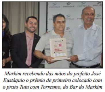 * Fonte e foto: Texto de Rejane Gomes publicado com o título “Tutu com torresmo é o prato vencedor do Festival Só no Tira-Gosto” e subtítulo “Evento encerrou sua quinta edição com a participação de 40 estabelecimentos” na edição de 11 de novembro de 2017 do jornal Folha Patense.