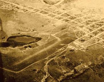 * Foto: Do livro Patrimônio de Santo Antônio: Do Sítio ao Templo, de Sebastião Cordeiro de Queiroz, publicada em 20/01/2017 com o título “A Chapada na Década de 1940”. Em destaque, entre o PTC e a Lagoa Grande, o antigo campo de aviação.