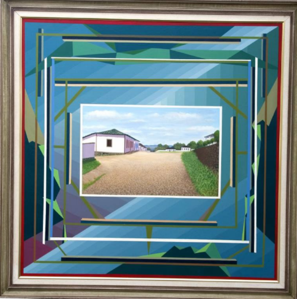 Eu nasci no distrito de Santana de Patos. Por isso tive o desejo de retratá-lo. Tempo de execução: seis dias. Materiais utilizados: tinta a óleo e pincel. Técnica: Óleo sobre tela. Pintado do ano de 2009. Esta obra faz parte da escola acadêmica. O estilo é A Travessia, criado por mim. Este estilo é a fusão do simples com o complexo onde aparecem coisas simples da natureza fundidas com o complexo que são as formas geométricas. A primeira casa a esquerda não existe mais. Era a casa dos Caixetas. Deste mesmo lado tem a Venda do Godó e depois é a casa do senhor Tininho. Na esquina à direita é a casa do senhor Borongo.