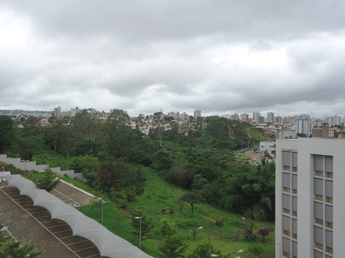 O verde exuberante não é nenhum parque ecológico e muito menos área de proteção ambiental. É a chamada popularmente Matinha do Guanabara¹, uma área de aproximadamente 50 mil metros quadrados que vem resistindo bravamente ao poderio da construção civil. Quanto tempo vai resistir, não se sabe, mas seu fim já está decretado. Nela estão presentes duas nascentes que formam um arroio já todo contaminado por dejetos de esgotos sanitários que deságua no Córrego da Cadeia por debaixo da Avenida Padre Almir Neves de Medeiros (à direita), seguindo seu curso até o Rio Paranaíba. Em primeiro plano à esquerda o estacionamento do Fórum (parte deste à direita).