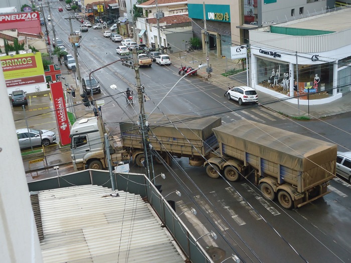 Vindo pela Rua Major Gote, o monstrengo enorme e pesadíssimo contornou a Praça Antônio Dias, cruzou a Rua Cesário Alvim e o roteiro seria passar pela Praça Champagnat e alcançar a Avenida Marabá, isso por si uma das maiores aberrações patenses que autoridade alguma põe um fim. Mas eis que a carreta, pasmem, inacreditável, resolveu convergir à esquerda e entrar numa das ruas mais complicadas da Cidade: a estreita Maestro Randolfo, a do Hospital São Lucas, mão dupla, trânsito congestionado 24 horas, uma loucura, carros estacionados dos dois lados, gente atravessando a todo instante. Causando um imenso transtorno ao carregado trânsito, ela fez a perigosíssima conversão quase subindo no passeio, peitou todo mundo espremendo os outros veículos, passando a poucos centímetros deles e das pessoas, quase batendo numa ambulância que desembarcava um paciente, e foi em direção à Avenida Paracatu, leve e solta como se aquele absurdo fosse natural. É assim que a banda toca por aqui!