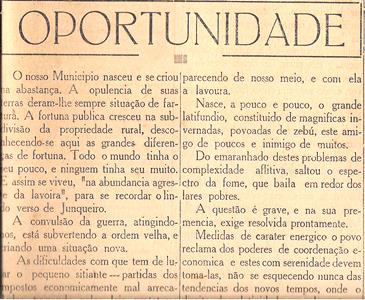 * Fonte: Texto publicado com o título “Oportunidade” na edição de 30 de maio de 1943 do jornal Folha de Patos, do arquivo da Fundação Casa da Cultura do Milho, via Marialda Coury.