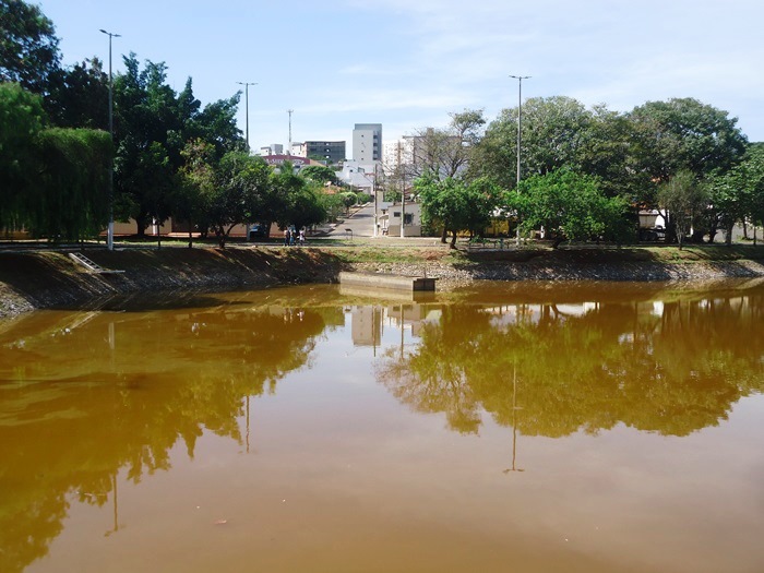 A intermitência climática é uma doidera. Depois de um mundaréu de água com duas enchentes provocadas pelo Rio Paranaíba, que fartaram também as nossas lagoas, eis que o líquido celeste se foi. E em se fondo, o nosso Rio-Mor se acalmou, voltou ao seu leito e as lagoas ainda existentes na região, tadinhas, começaram a mirrar. Um exemplo é a Lagoinha, que oficialmente desde 1993 atende pelo nome de Parque João Luiz Redondo¹. Mas o nome não pegou de jeito algum, e, tadinho do homenageado, só se conhece aquele pequeno espelho d’água como Lagoinha. Baseado no escoadouro, percebe-se a sede da Lagoinha. A propósito, a via à frente é a Rua Ana de Souza, que vai até a Avenida Paracatu.