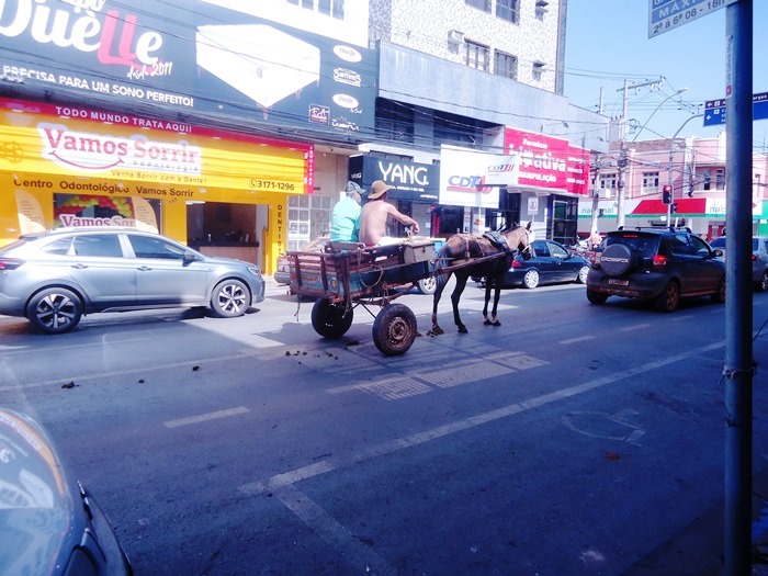 Dez horas da manhã de uma sexta-feira de trânsito já caótico na Rua Major Gote, como de costume, principalmente quando estão frequentemente presentes as famigeradas carretas bi-trem. Vinda sabe-se lá de onde, essa carroça, com dois humanos e um inocente equino a rebocá-los. Quase na esquina com a Olegário Maciel, o animal deixa suas lembranças intestinais, tantas que o veículo motorizado atrás se distanciou por segurança bostal. E lá foram eles na carroça, sabe-se lá para aonde, caotizando ainda mais o trânsito. Êta Patos de Minas, com os tutores que tem, tu é uma mãe deveras generosa!